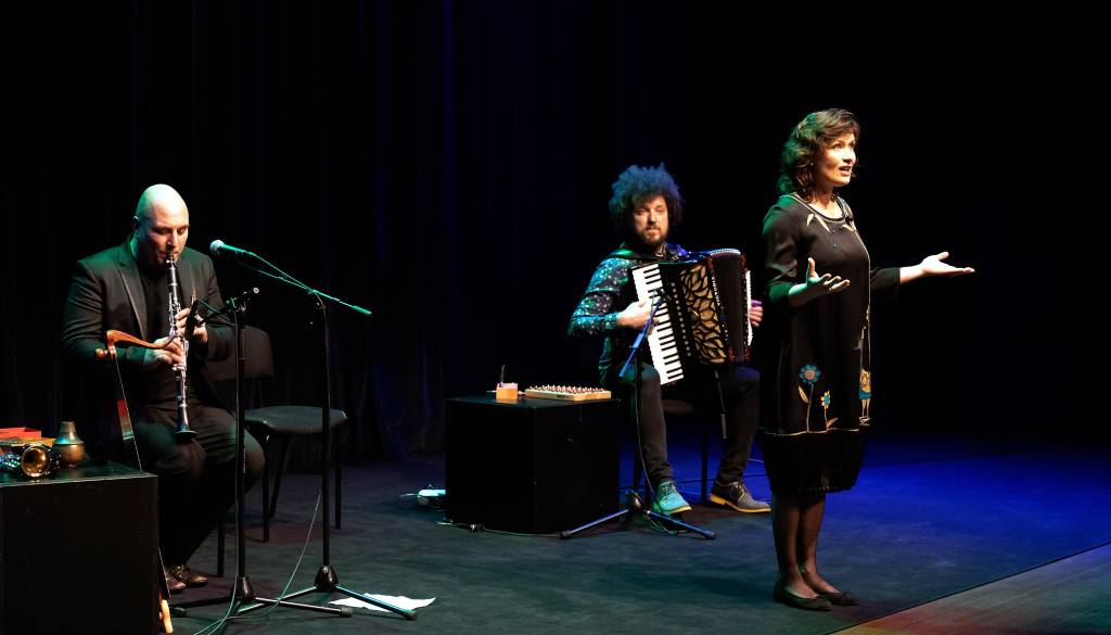 Boštjan Gombač in Janez Dovč, vsestranska glasbenika z dolgoletnimi izkušnjami v ljudski in avtorski godbi, pa besedam dodata glasbeni odmev.