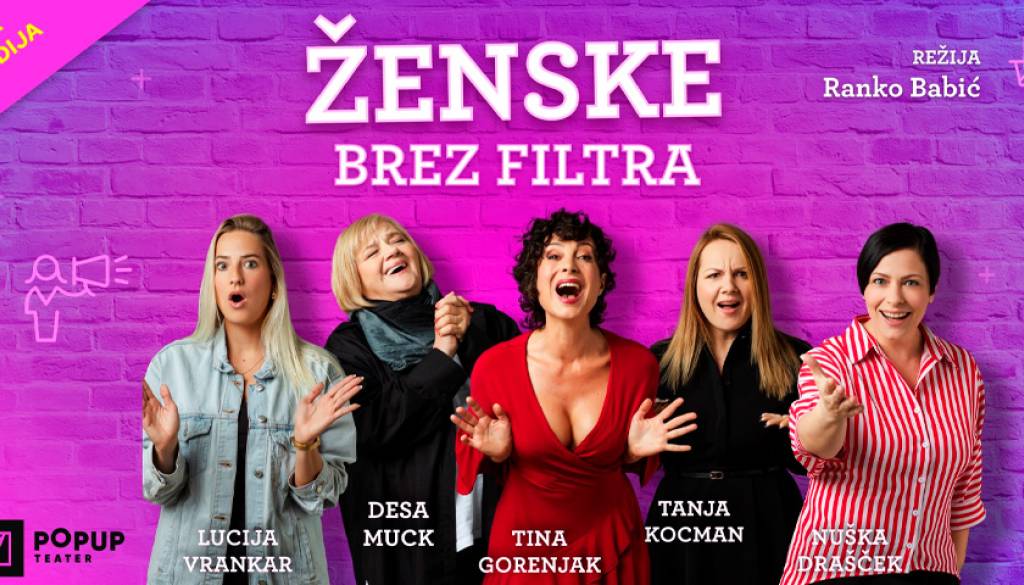 Vsaka od teh 5 žensk prinaša svojo zgodbo in izkušnje, vse pa združuje nefiltriran pogled na današnji svet, ki je pogosto prekrit s filtri. Na odru vas bo teh 5 žensk s vpogledom v svoje življenje in razmišljanje zagotovo nasmejalo do solz, filtre pa bodo prihranile za Instagram.