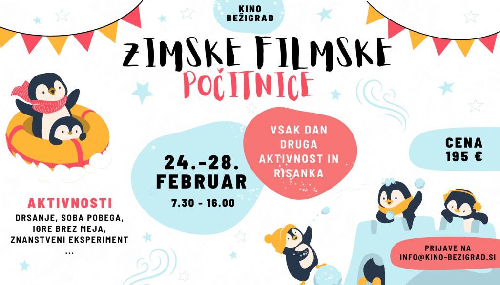 Kino BežigradV Kinu Bežigrad v letu 2025 poleg poletnih, organiziramo tudi nore zimske filmske počitnice za najmlajše ljubitelje animiranih junakov in zanimivih avantur! 🎥 Otroci se bodo vsak dan podali na razburljivo potovanje skozi svet risank na velikem platnu, poleg tega pa jih vsak dan čaka tudi nova aktivnost, kot so drsanje, soba pobega, znanstveni eksperiment ... 🙌