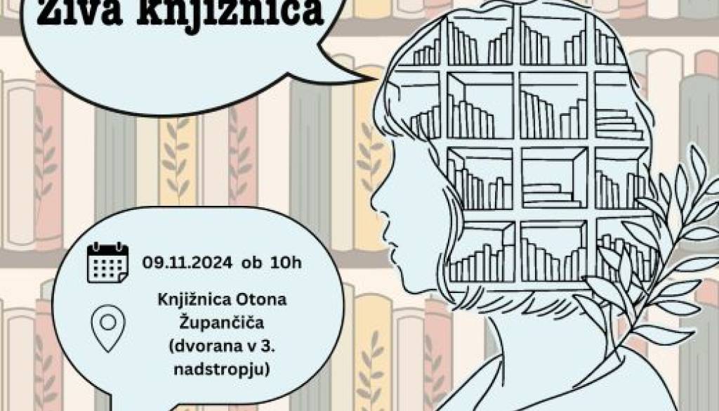 Mestna knjižnica Ljubljana - Knjižnica Otona ŽupančičaPridružite se nam in si za spremembo v knjižnici za nekaj dragocenih trenutkov sposodite ‘živo knjigo’. Le ta bo z vami delila svojo zgodbo, ki je obarvana s posredno ali neposredno izkušnjo duševne motnje. Nekatere knjige bodo lahko z vami delile drugo plat duševne motnje - kako je biti v koži strokovnjaka na področju duševnega zdravja. Kdo so torej ‘žive knjige’? ‘Žive knjige’ so ljudje. Ljudje z izjemnimi življenjskimi zgodbami, ki si želijo z deljenjem svoje zgodbe pripomoči k destigmatizaciji tematik duševnega zdravja in duševnih motenj.