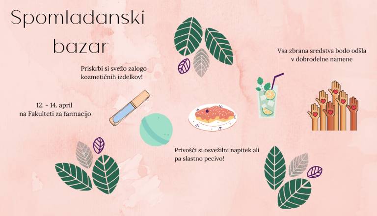 Pomlad 💐 je že v polnem razmahu in po petih letih se na hodnike naše Fakultete za farmacijo vrača težko pričakovani Spomladanski bazar. 𝗦𝗣𝗢𝗠𝗟𝗔𝗗𝗔𝗡𝗦𝗞𝗜 𝗕𝗔𝗭𝗔𝗥 = ...