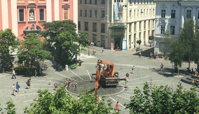 Poglejte, kako so postavili umeten dež na Prešernovem trgu