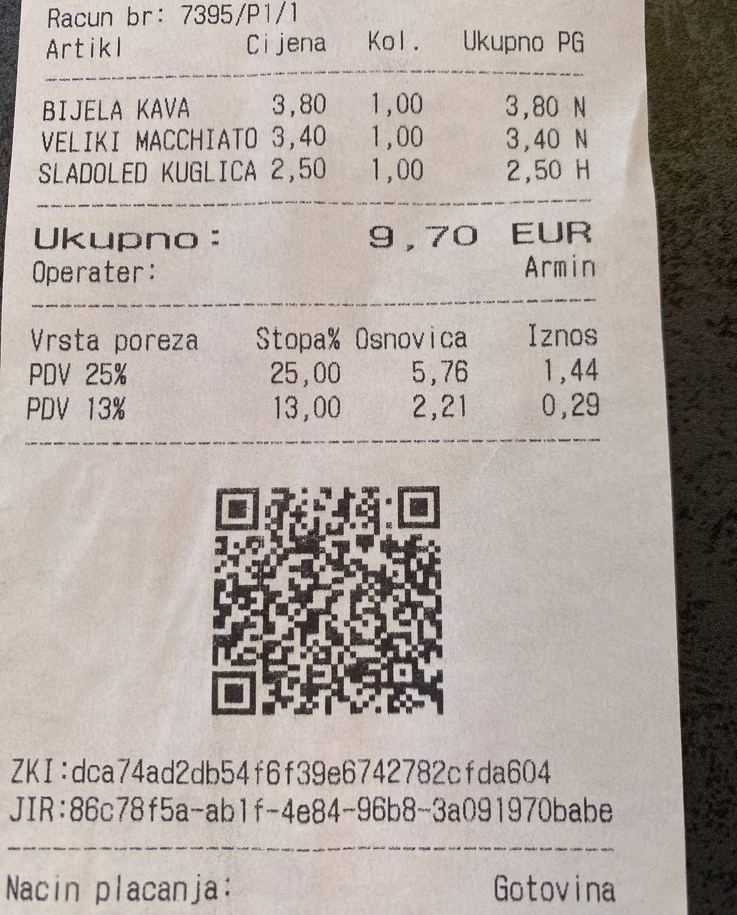 Eden takšnih primerov prihaja iz lokala v Istri, kjer so za tri običajne izdelke – belo kavo, veliki macchiato in kepico sladoleda – zaračunali kar 9,70 evra.
