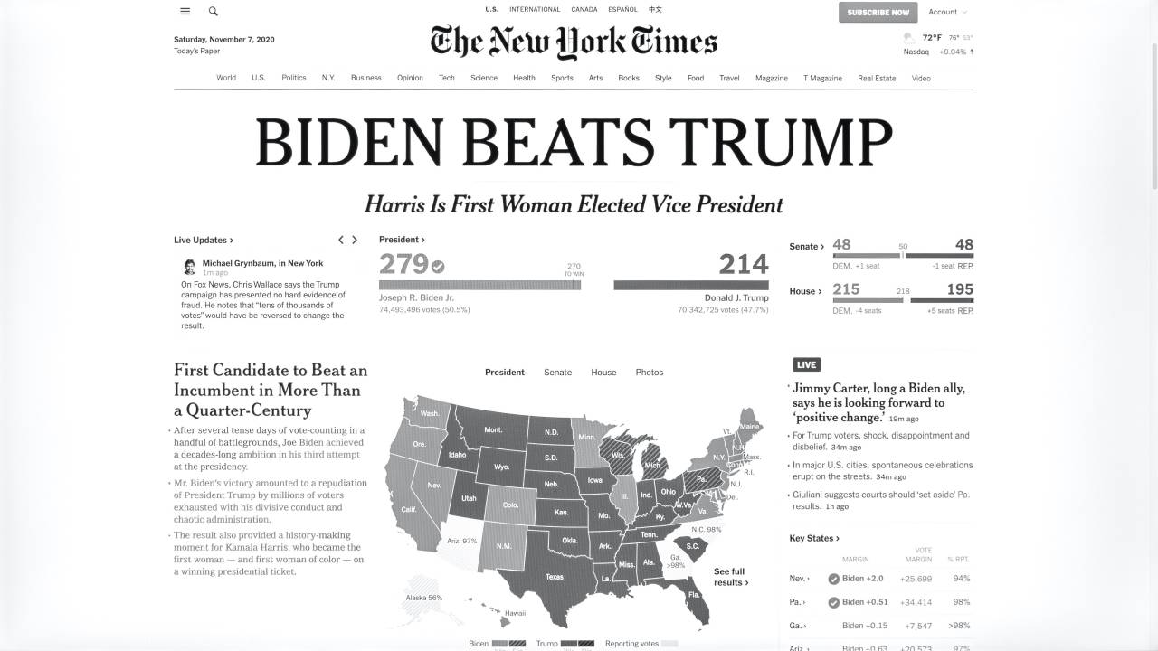 7. november - S 306 elektorskimi glasovi je zmagal demokrat Joe Biden in postal 46. predsednik ZDA, Donald Trump pa je postal prvi ameriški predsednik od leta 1992 in enajsti v zgodovini države, ki se je potegoval za drugi mandat in izgubil.