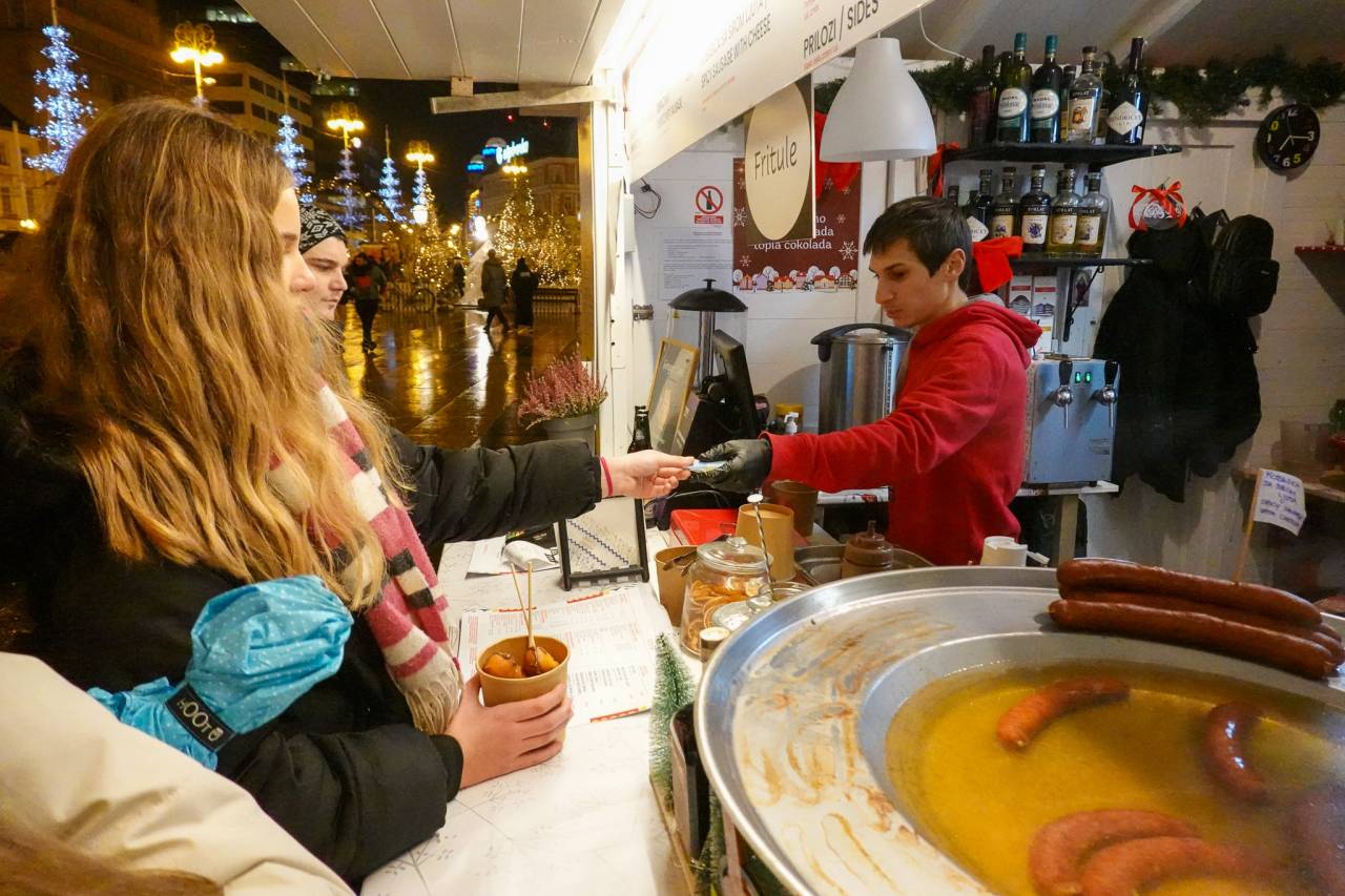 Klobasice, ki veljajo za nepogrešljiv del adventnega doživetja, stanejo sedem evrov za kos, medtem ko so hrenovke nekoliko cenejše – štiri evre.