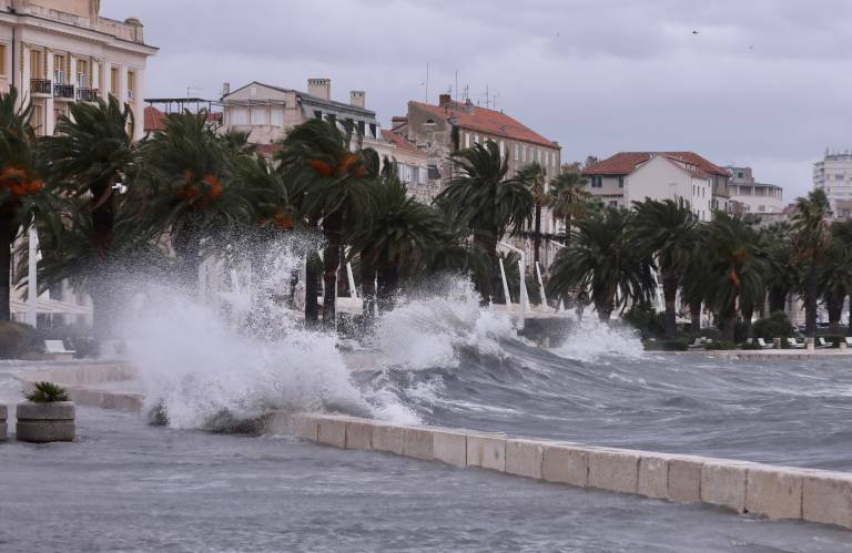 Na Hrvaškem močan veter danes povzroča težave zlasti na obalnih predelih v Dalmaciji, kjer je morje ponekod poplavilo dele mest, med drugim v Splitu, Šibeniku in na nekaterih otokih.
