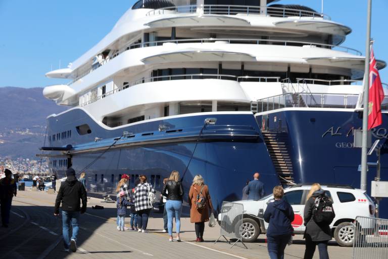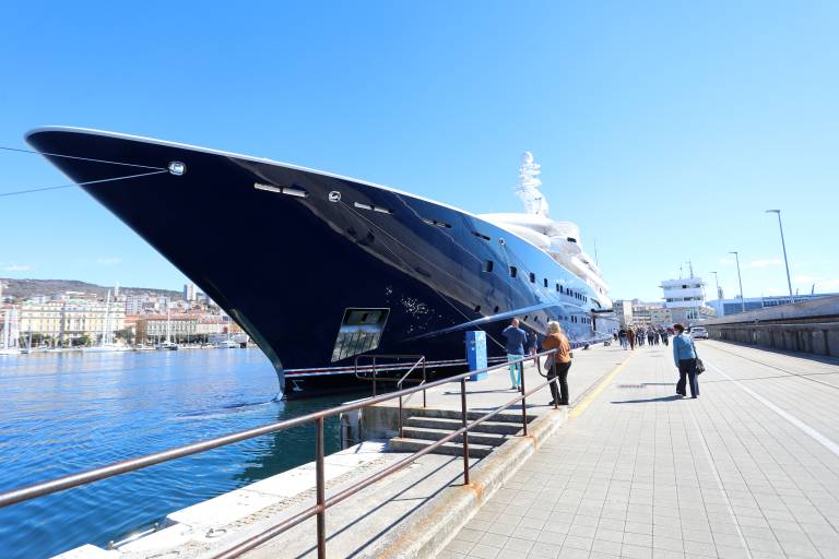V reškem pristanišču se je zasidrala ena največjih jaht na svetu, Al Mirqab, ki pripada Hamadu bin Džasimu bin Džaber Al Taniju, nekdanjemu katarskemu premierju ter lastniku francoskega nogometnega kluba PSG.