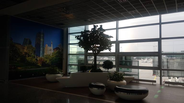 Frankfurtsko letališče je polno presenečenj: tudi navadnim smrtnikom nudi zelene »oaze«, gostinske »vrtove«, sobo z igralnimi konzolami, igrišča za najmlajše, območje z udobnimi »jajčki«, v katere se lahko zlekneš in res olajšajo čakanje, in kar pride pri obilici prtljage najbolj prav – tekoče talne površine. Letališče je že samo po sebi dopust v malem.