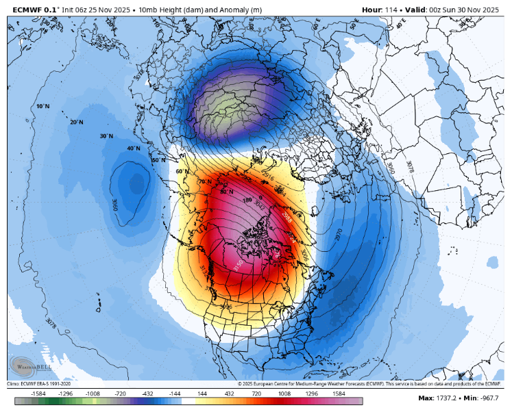 Zgodnje stratosfersko segrevanje je letos nastopilo že novembra, kar je zelo redko in se je v zadnjih sedmih desetletjih zgodilo le nekajkrat.