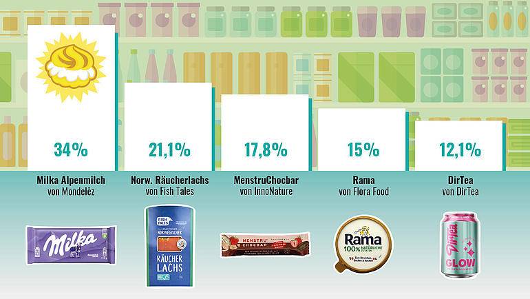 Na četrtem in petem mestu sta pristali Rama margarina skupine Flora Food Group in ledeni čaj Dirtea Glow raperke Shirin David. Pri margarini so pri Foodwatchu izpostavili, da se oglašuje z oznako »100 odstotkov naravne sestavine«, čeprav vsebuje številne »aditive in industrijsko predelane sestavine«. Shirin David pa je svoj ledeni čaj promovirala z vidnim »glow« učinkom za »lepo kožo in nohte«.