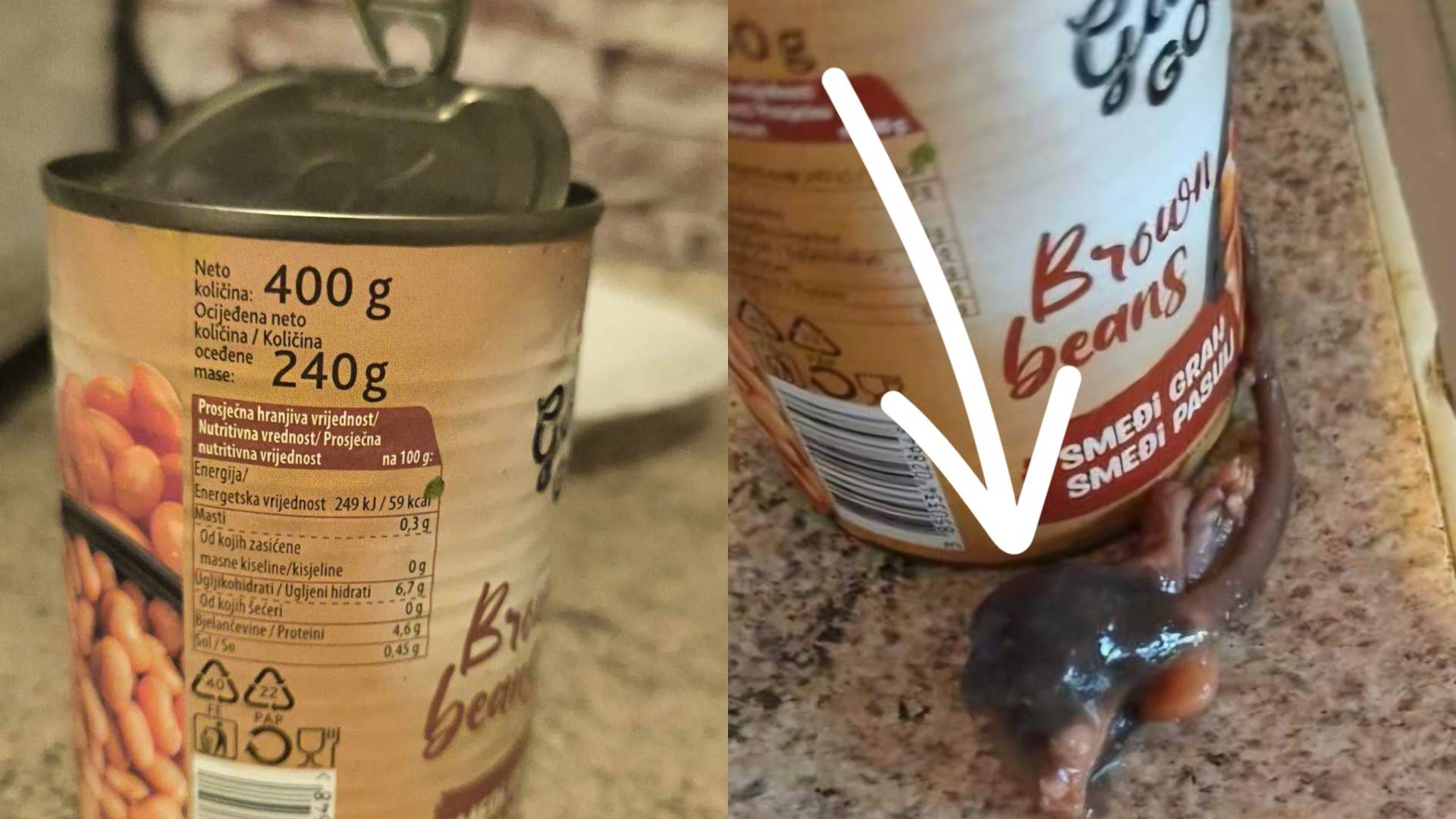Stvar ne bi bila toliko nenavadna, če v njej ne bi kupec našel polovice podgane. Šlo je za pločevinko rjavega fižola K plus Garden Good proizvajalca Fiamma Vesuviana iz Italije, je poročal hrvaški medij Dnevnik.hr.