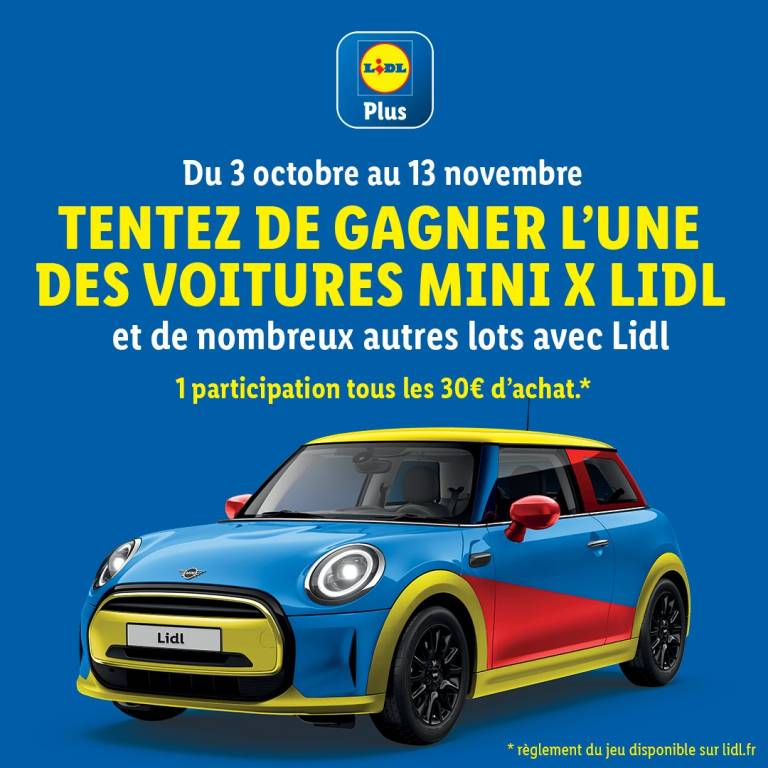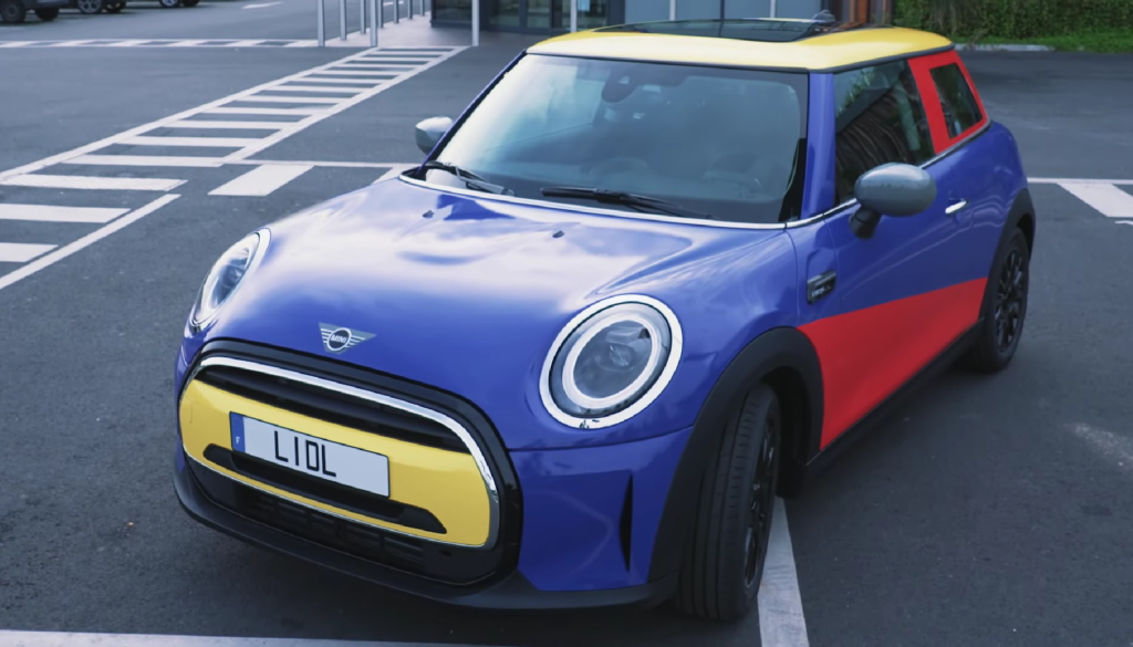 Po supergah, nogavicah, puloverjih so zdaj predstavili lidlovo različico avtomobila Mini Cooper. Avtomobil v značilni modro-rdeče-rumeni kombinaciji je glavni dobitek nagradne igre v Franciji.