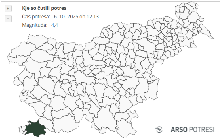 Po podatkih Agencije Republike Slovenije za okolje je do potresa prišlo ob 12.13 po lokalnem času.