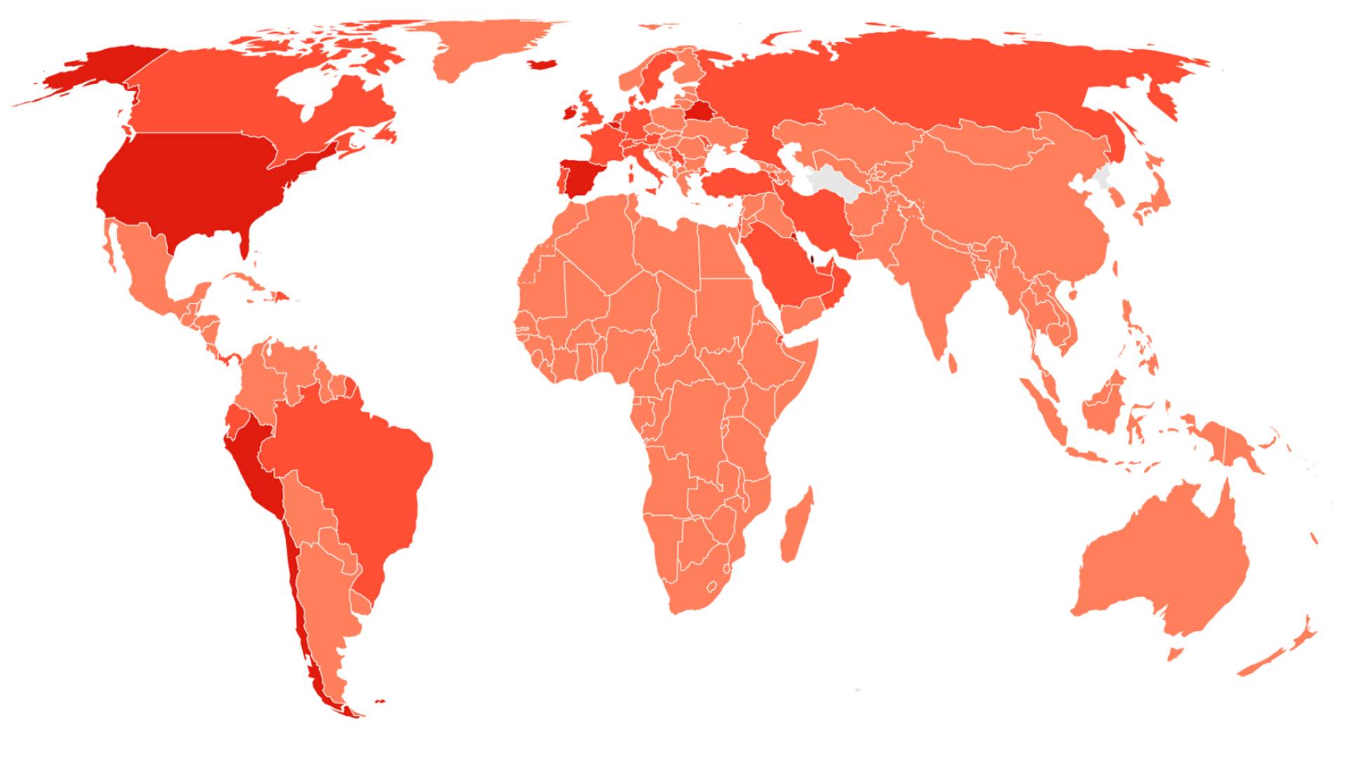 Več kot tisoč smrti na milijon prebivalcev so zabeležili v 28 državah sveta, med drugim tudi v ZDA, Hrvaški, Španiji, Švici, Argentini, Franciji in na Švedskem.