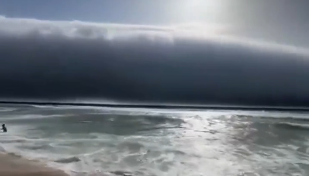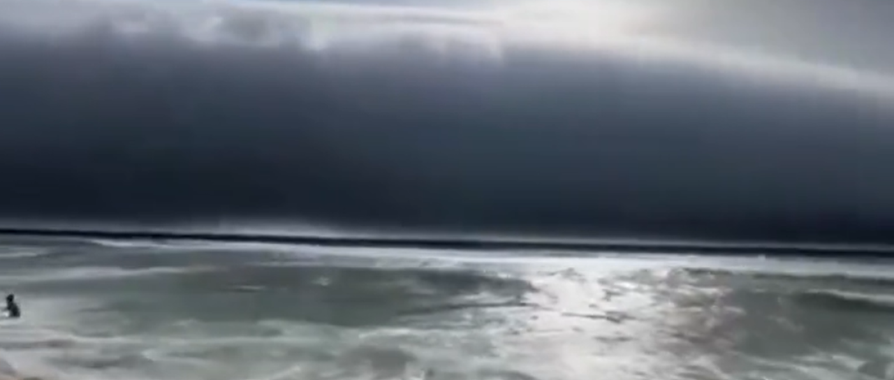 Gre za tako imenovani rolni oblak, ki ima cevast, skoraj vodoraven videz in se počasi premika ob obali.