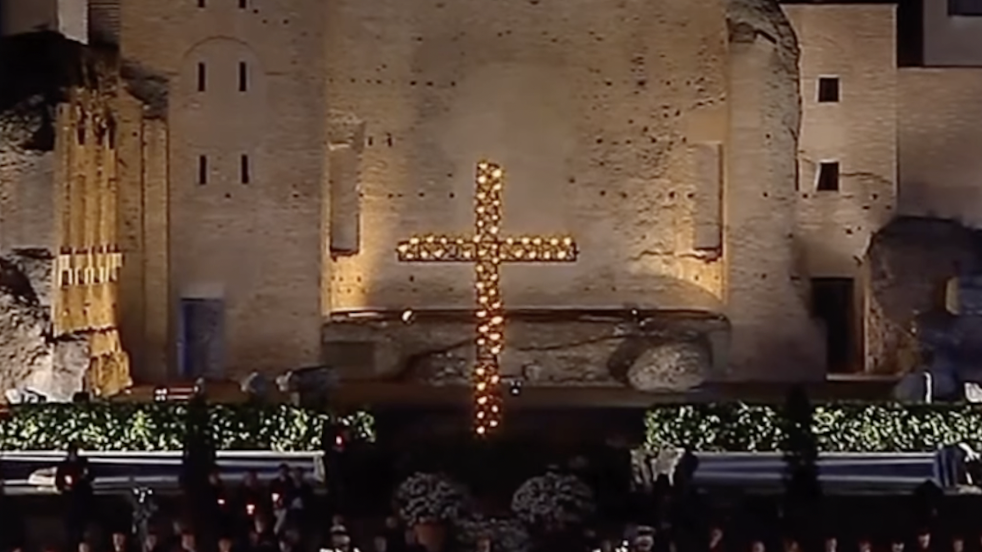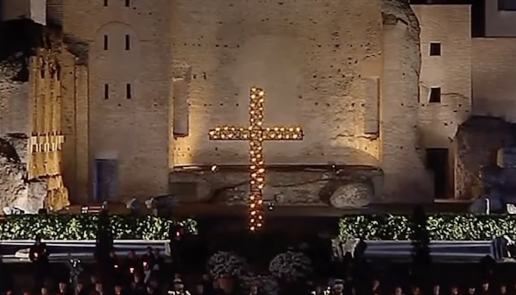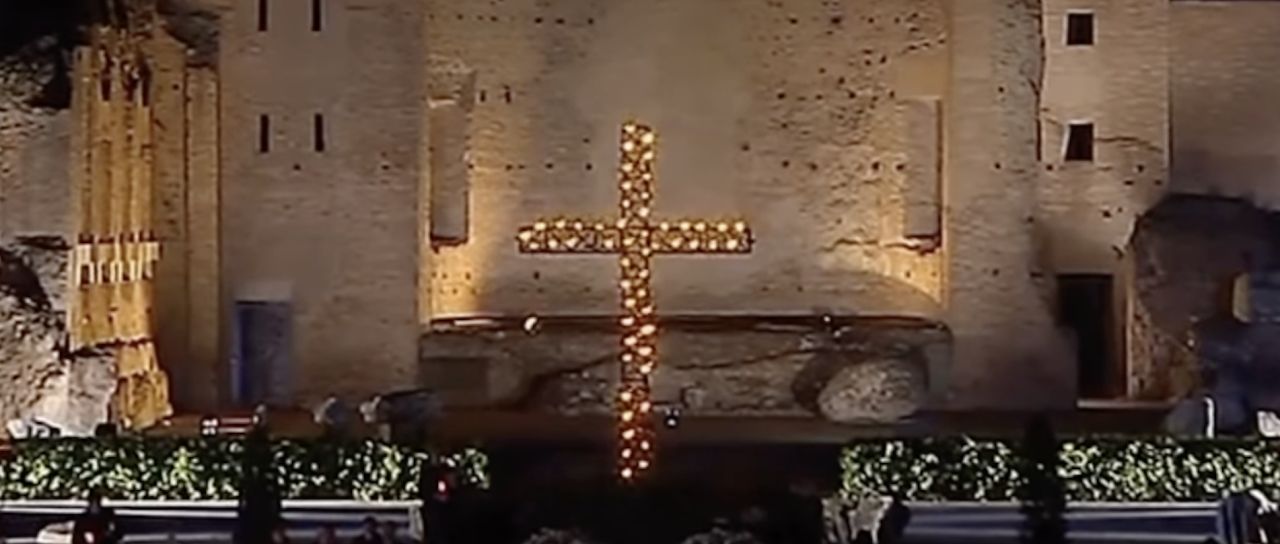 Več deset tisoč vernikov se je v petek zvečer v rimskem Koloseju na veliki petek udeležilo procesije v spomin na križev pot. Simbolni križ so nosili čez 14 postaj. Papež Frančišek, ki bogoslužja zaradi okrevanja po hudi bolezni ni vodil, je napisal meditacije, v katerih je izpostavil, da naš zlomljeni svet potrebuje iskrene solze.