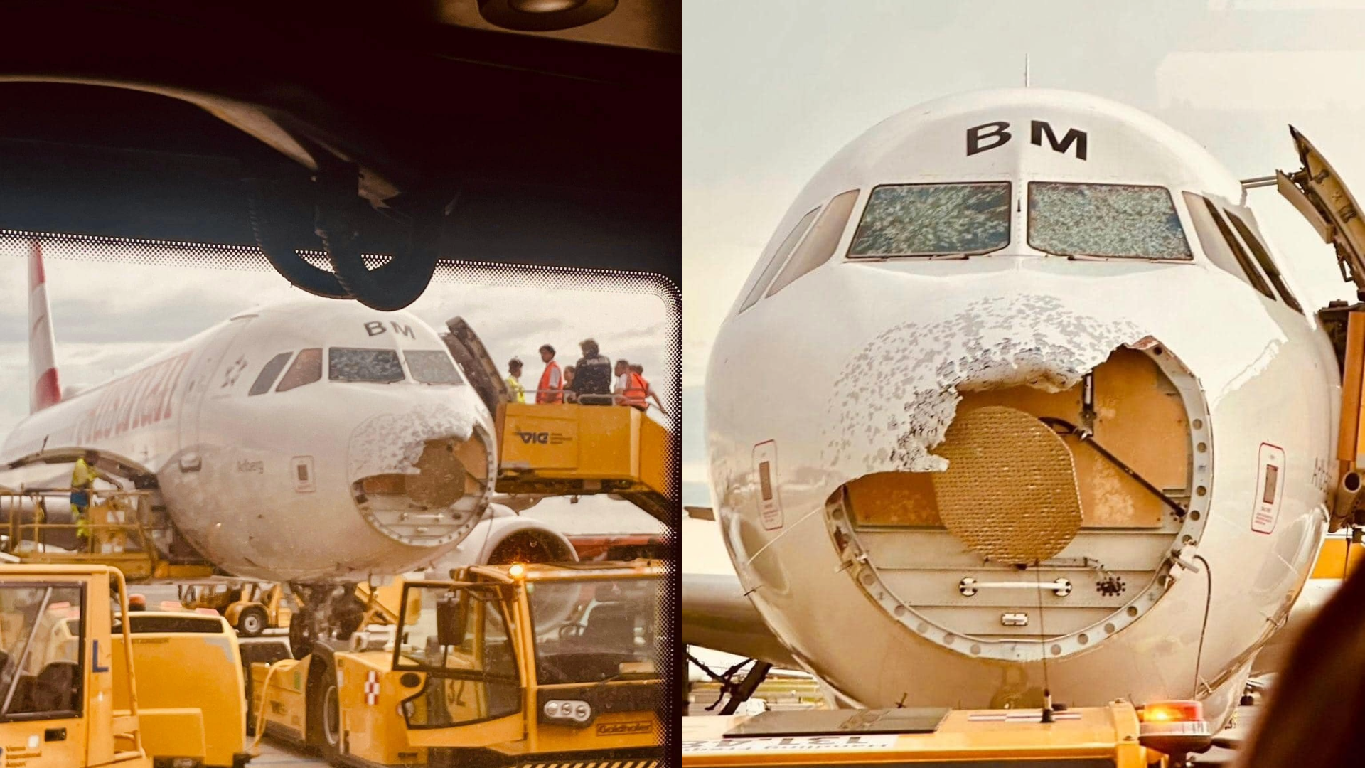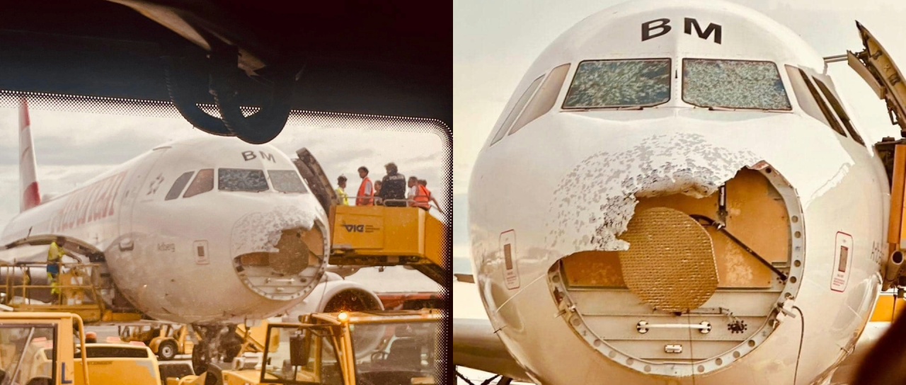 Letalo je na svoji poti iz Maroka na Dunaj poletelo direktno skozi supercelično nevihto, škoda pa je vidna na fotografijah.