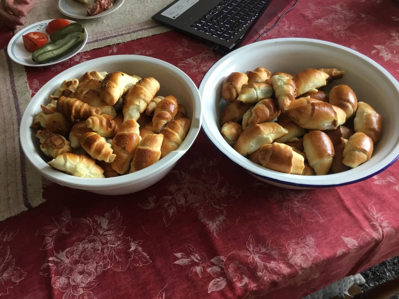 »Pogostokrat pravim, da mi izseljenci kuhamo bolj domače, kot vi v Sloveniji,« pove Kastelic in doda: »Ker so zime dolge in je časa veliko delamo tudi klobase in ocvirke, imamo koline, delamo žganjekuho, jeseni pa pri nas vre tudi mošt.«
