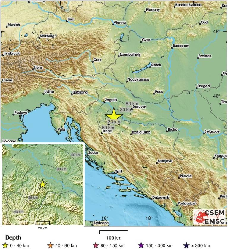 Epicenter potresa je bil 16 kilometrov severovzhodno od Siska, na globini približno devet kilometrov.