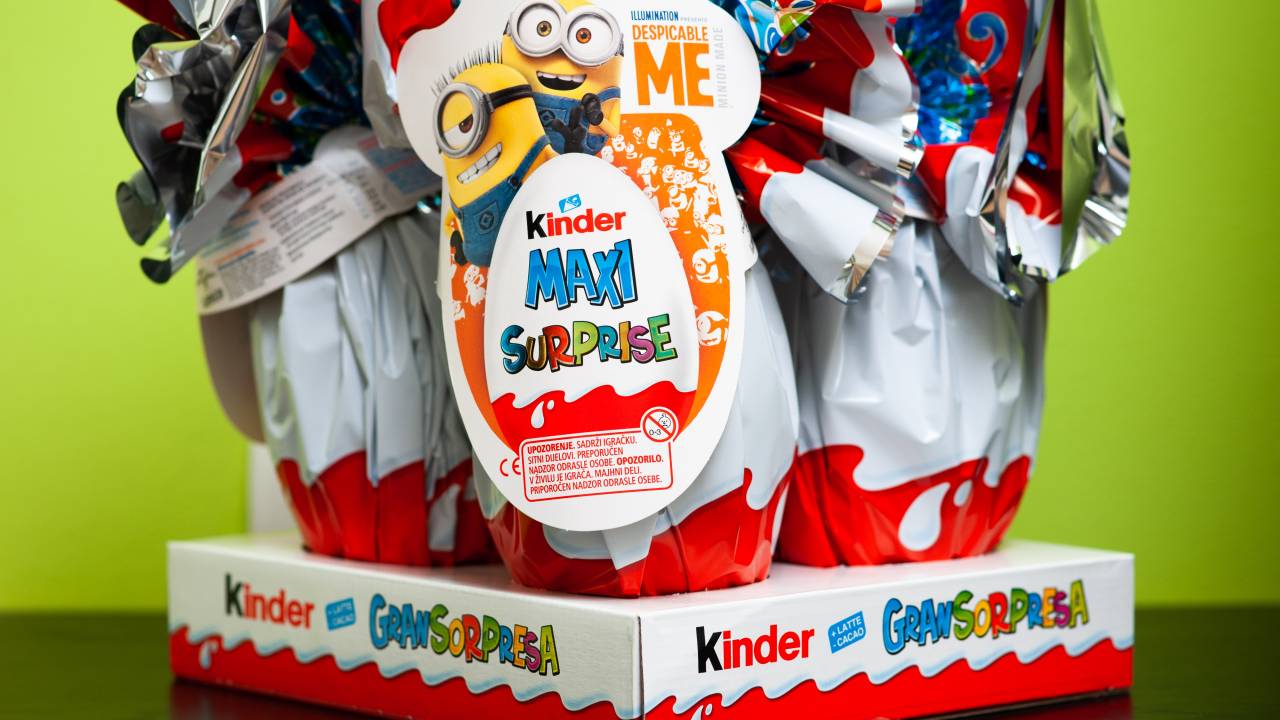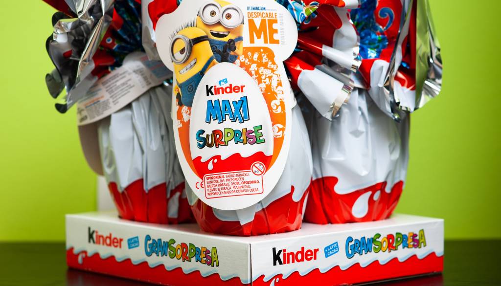 Čokoladni jajček Kinder združuje okus čokolade in vznemirljivost, ki ga prinese presenečenje. Na policah se je prvič pojavil leta 1974, od takrat so ga vzljubili otroci po vsem svetu.