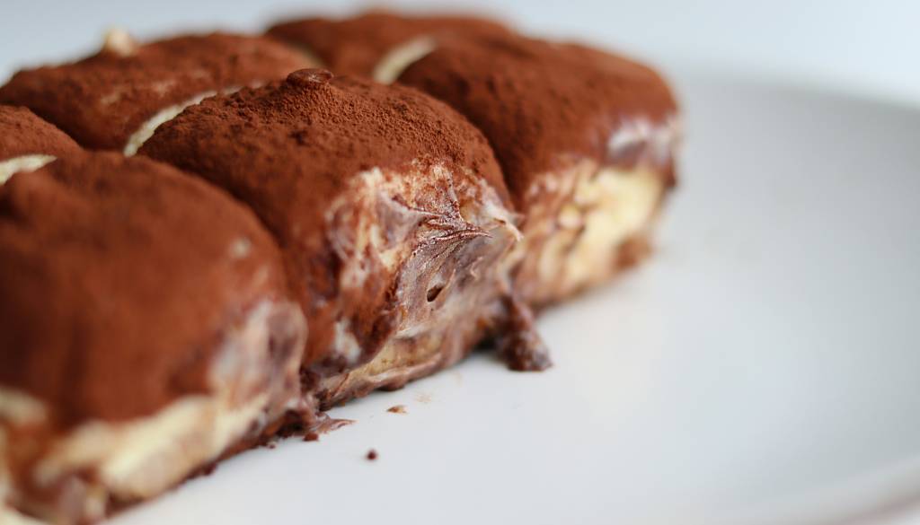 Tiramisu je sestavljen iz izmenjujočih se plasti biskvitnih piškotov, prelitih s hladnim espressom z dodatkom marsale ali amaretta ter kreme iz mascarponeja, sladkorja in jajc, po vrhu pa je potresen s kakavom v prahu.