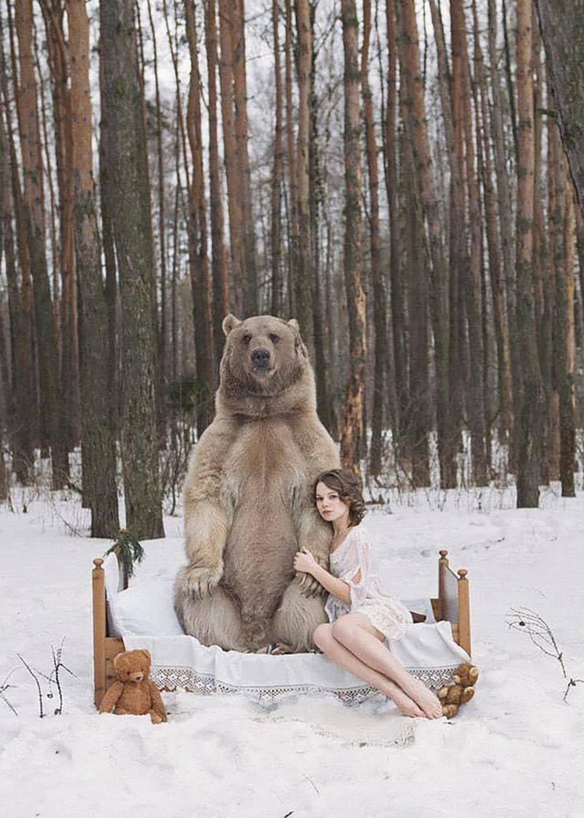 Ruska fotografinja Olga Barantseva se je lotila kampanje s katero opozarja na škodljive posledice prekomernega ribolova, ter možnost sobivanja med človekom in živalskim svetom. Fotografije je posnela v gozdu okolice Moskve, osrednji "akter" a je medvem Stepan, znan po več kot dvajsetih »vlogah« v ruskih filmih. Tono in pol težkega medveda so kot mladiča rešili iz ujetništva pri ribičih. Kot pravi njegov skrbnik Yury Pantaleenko, ki je Stepana rešil pri starosti treh mesecev, pravi da od malih tačk prijazen do ljudi in tako udomačen, da ga ni mogel pustiti nazaj v divjino.