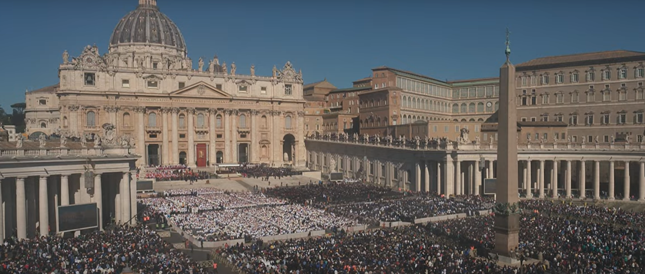 Na Trgu svetega Petra so se zbrali verniki, veljajo pa strogi varnostni ukrepi, vključno z varnostnimi pregledi pred vstopom na trg.