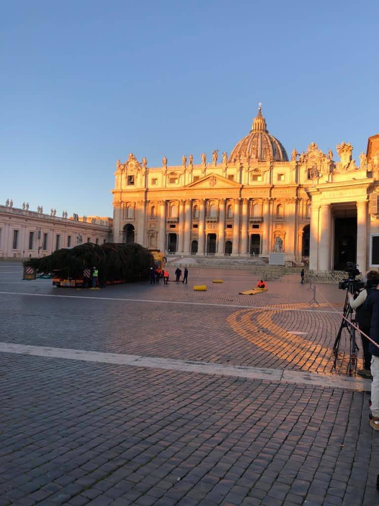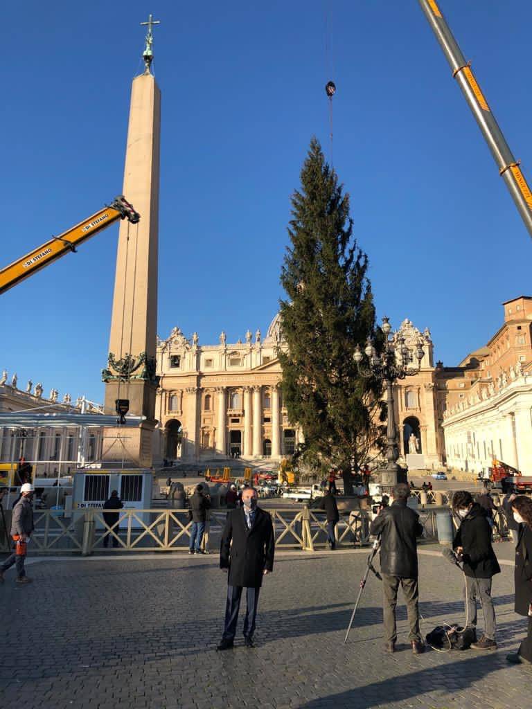 V dogovoru s Svetim sedežem in po odločitvi vlade na Trgu svetega Petra v Vatikanu že stoji slovensko božično drevo, smreka iz kočevskih gozdov. Otvoritvena slovesnost bo v Vatikanu 11. decembra.