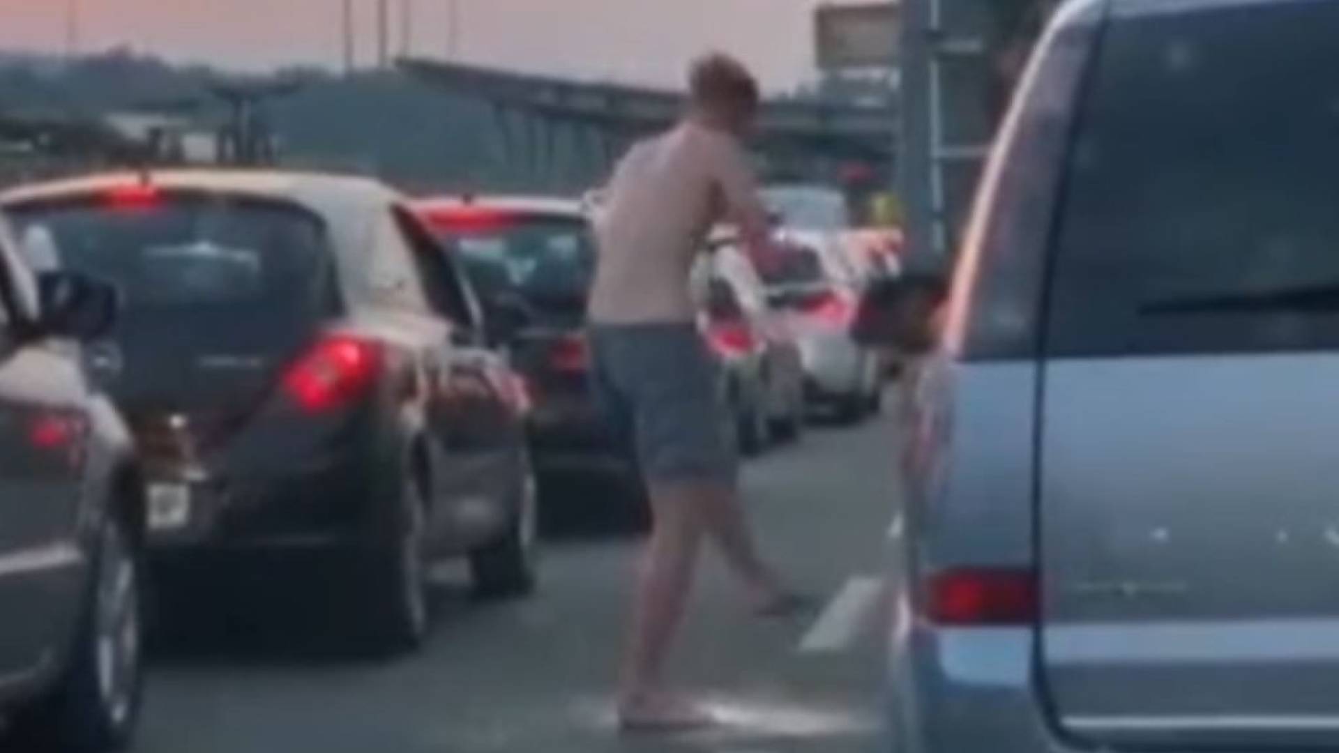 Saj ni res, pa je! Zaradi visokih temperatur in dolgega čakanja v koloni se je voznik stuširal kar na avtocesti.