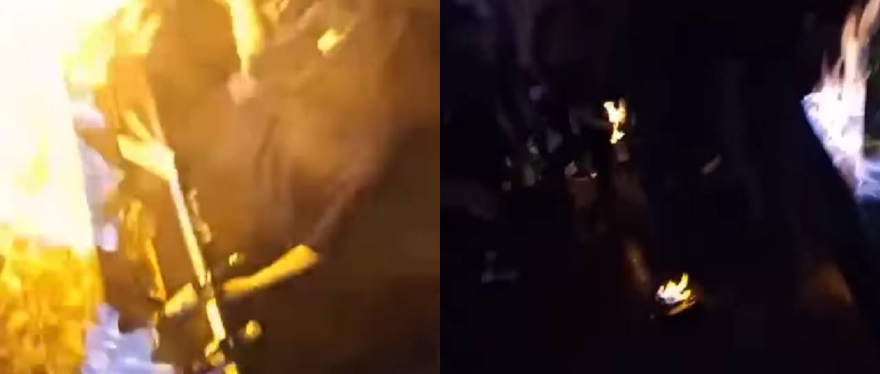 Po prvih podatkih je zagorela steklenica, ogenj pa je nato zajel goste, ki so stali v bližini pulta.