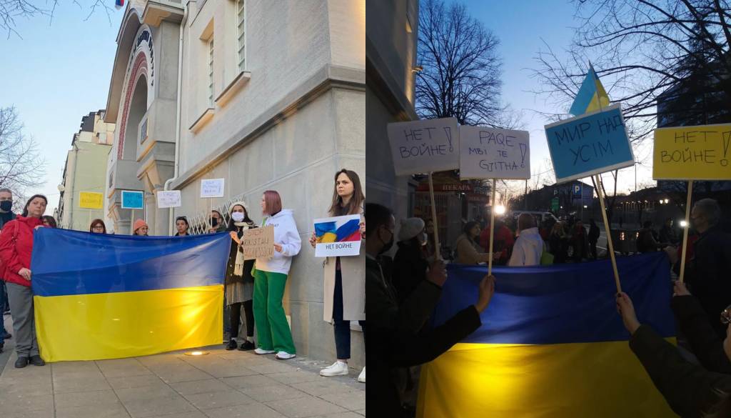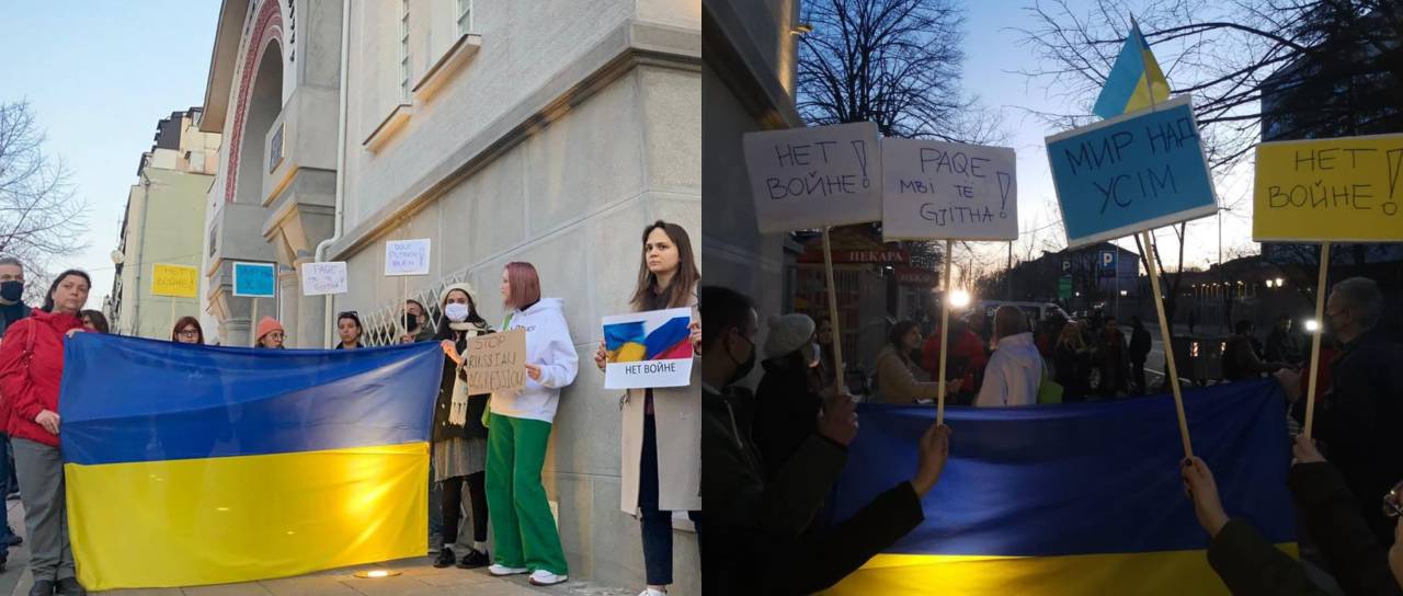 V četrtek popoldne je pred ruskim veleposlaništvom v Sofiji potekal protest proti invaziji Kremlja v Ukrajino. Udeležilo se ga je okoli 200 ljudi, od zaskrbljenih domačinov in znanih protestnikov do ukrajinskih izseljencev in Rusov proti Putinovi politiki.