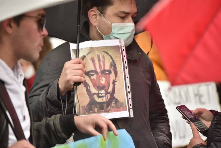 Nekateri posamezniki svoje nestrinjanje kažejo s protesti pred ruskimi embasadami.