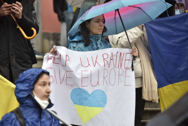 V številnih evropskih mestih se pred ruskimi embasadami zbirajo protestniki, ki izkazujejo podporo Ukrajini.