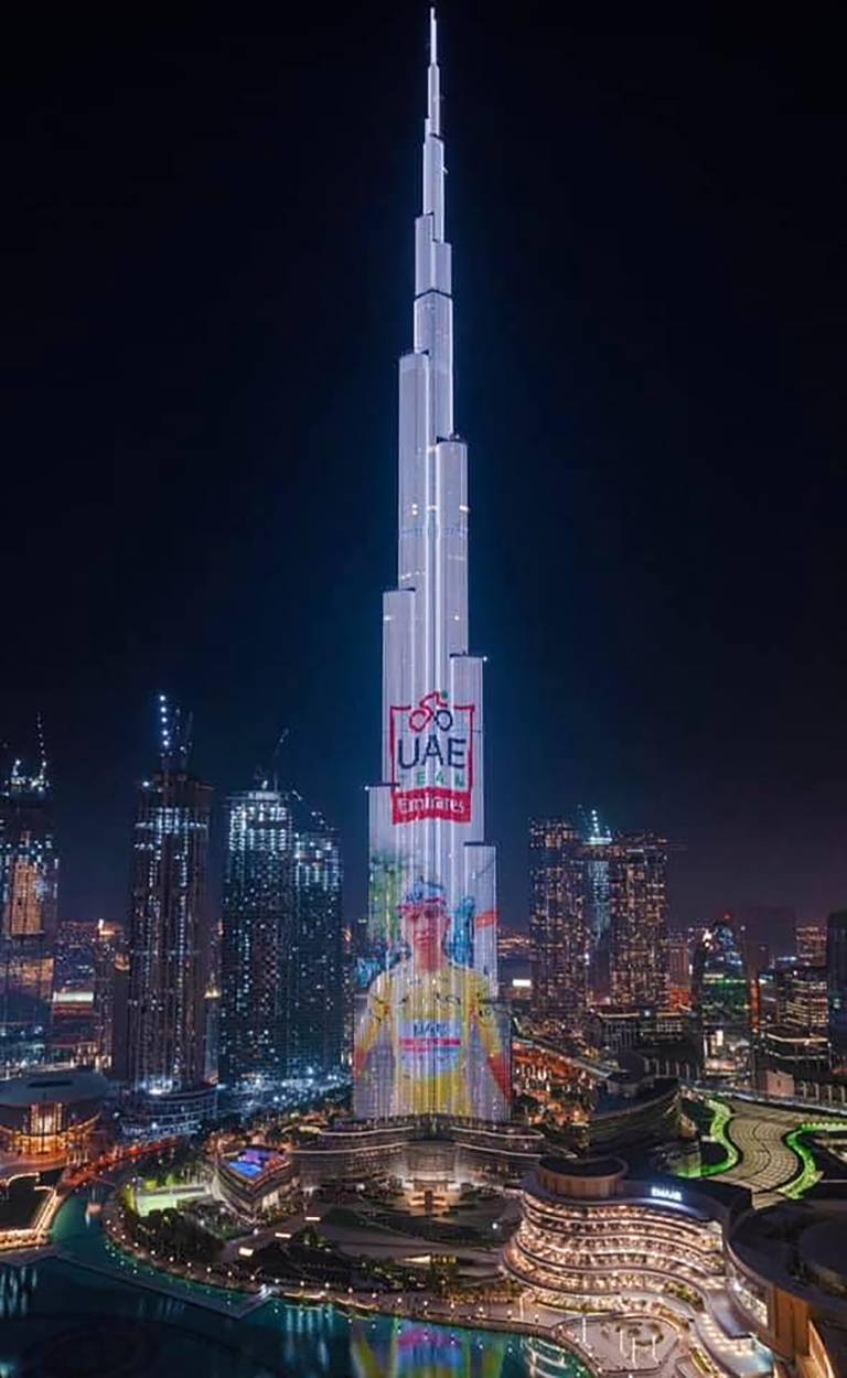 Pogačarjevo projekcijo na znamenito stolpnico Burj Khalifa so objavili po nedeljski zmagi in ob objavi zraven pripisali: »Čestitamo vodstvu in tekmovalcem ekipe Združenih arabskih emiratskih na senzacionalni 107. ediciji Tour de Franca, enem najbolj prestižnih tekmovanj v kolesarstvu."