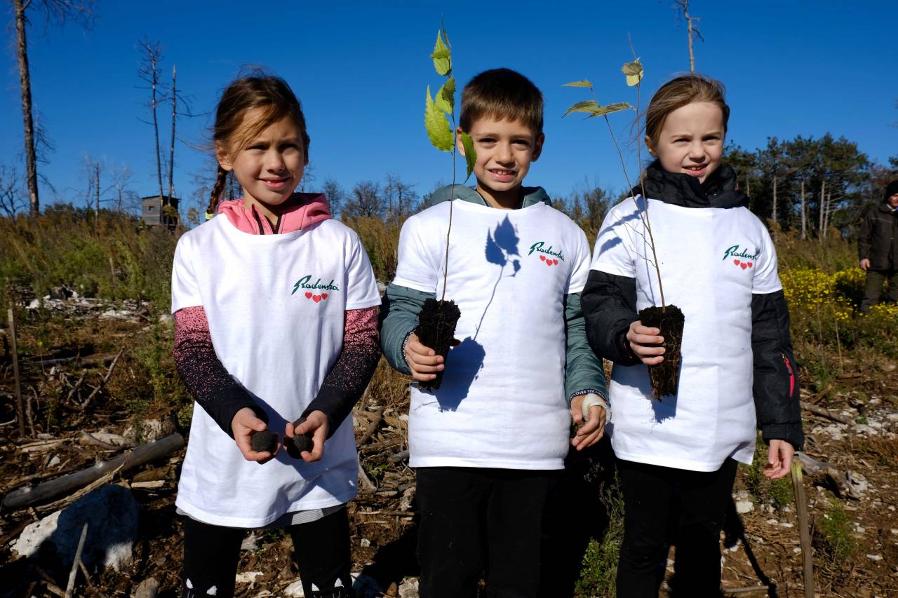 Zaposlenim v Radenski Adriatic so se pri sajenju pridružili še predstavniki Zavoda za gozdove Slovenije, poslovni partnerji in predstavniki lokalne skupnosti, med katerimi so bili tudi otroci iz 3. razreda podružnične osnovne šole Kostanjevica na Krasu, kjer se pravkar učijo o gozdovih in njihovem  pomenu.