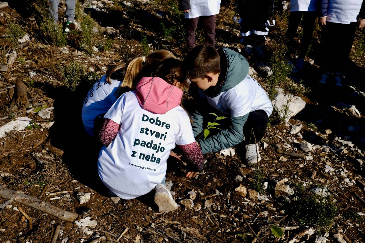 Pri obnovi gozda so pomagali otroci podružnične Osnovne šole Kostanjevica na Krasu.