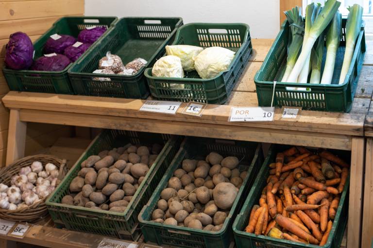 Prodajajo sezonsko zelenjavo in mlečne izdelke.