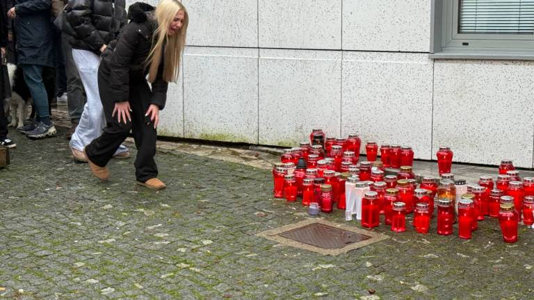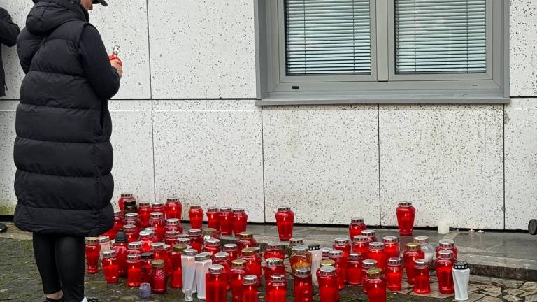 Pred lokalom na Rozmanovi ulici v Novem mestu se dopoldne zbirajo prebivalci, prijatelji in znanci tragično preminulega Aleša Šutarja. S prižigom svečk izražajo žalost in tiho podporo njegovi družini.