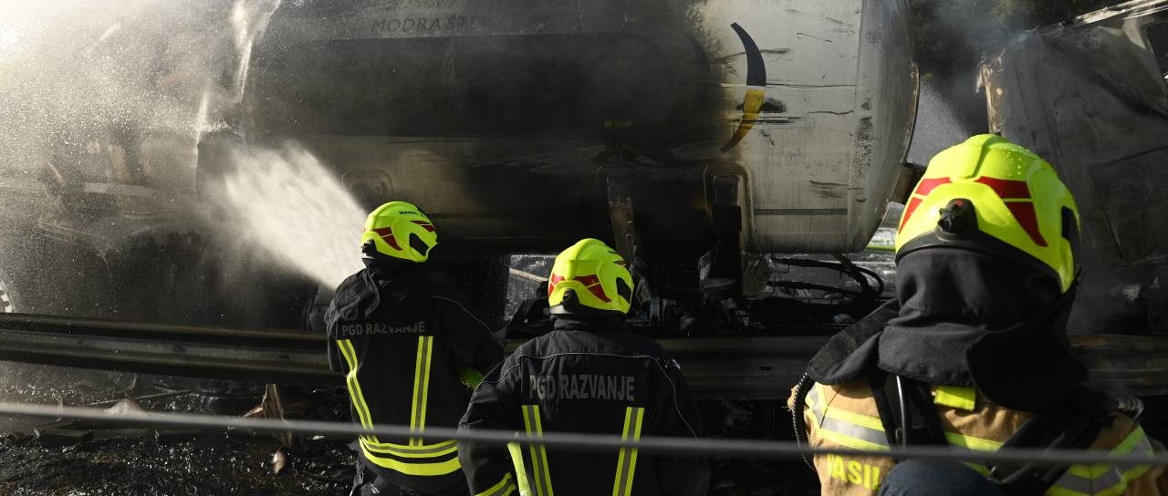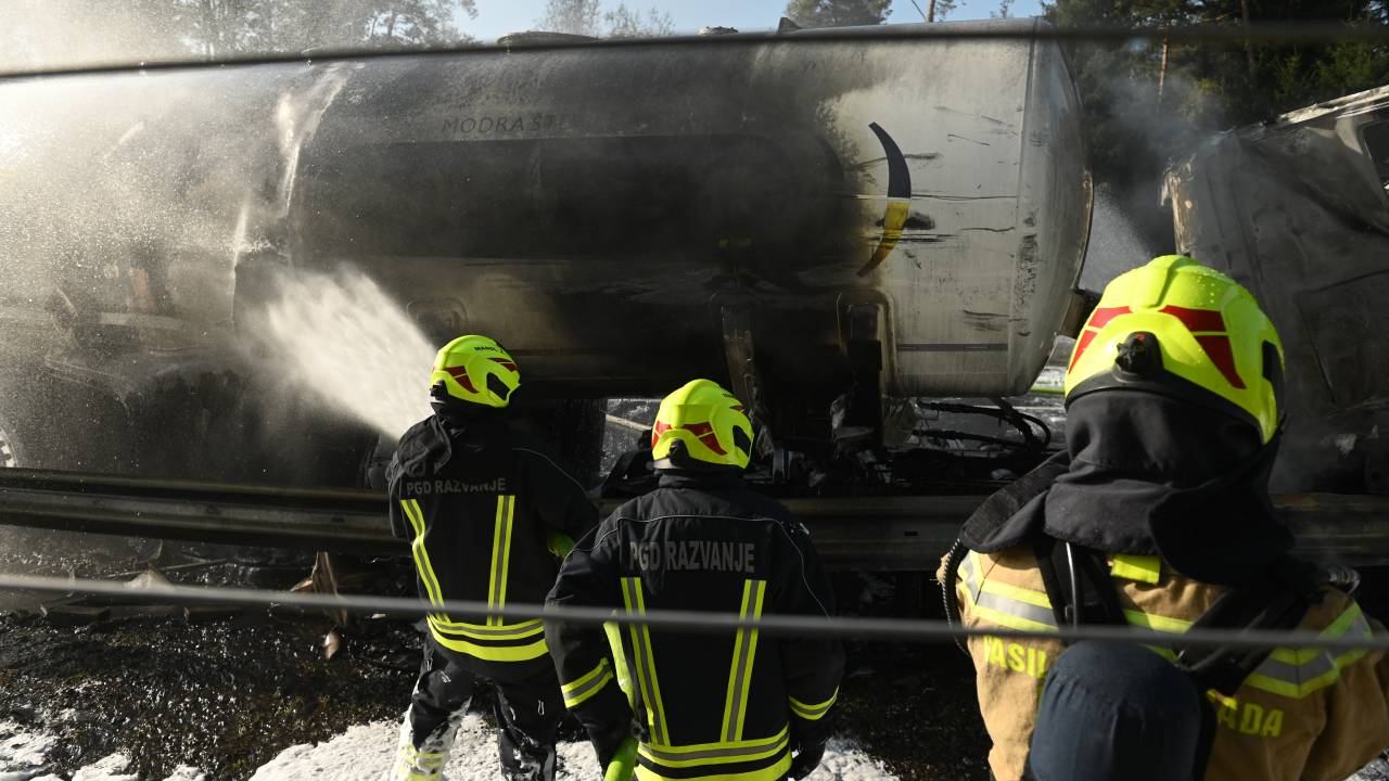 Cesta je zaprta zaradi gorečega tovornega vozila.