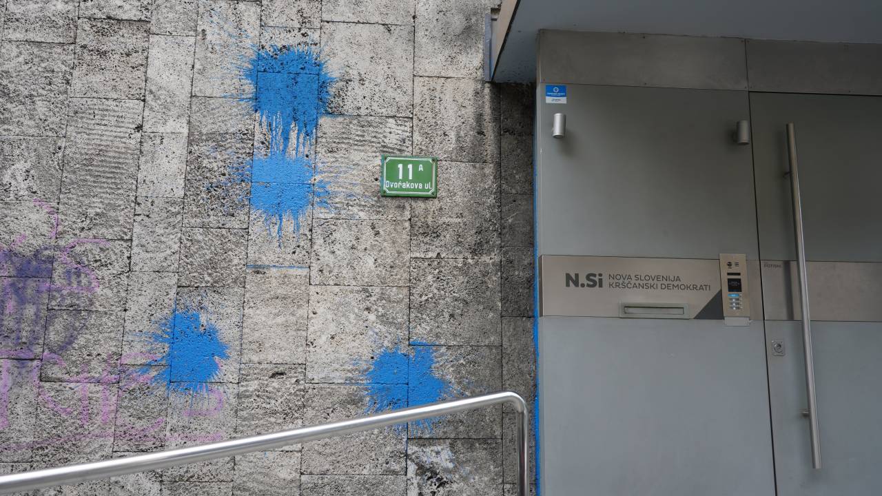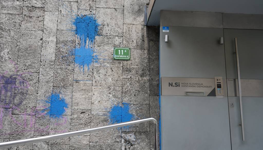 Neznanci so popackali stavbo, kjer ima sedež politična stranka Nova Slovenija. Uporabili so modro barvo, ki je tudi prepoznavna omenjene politične stranke.