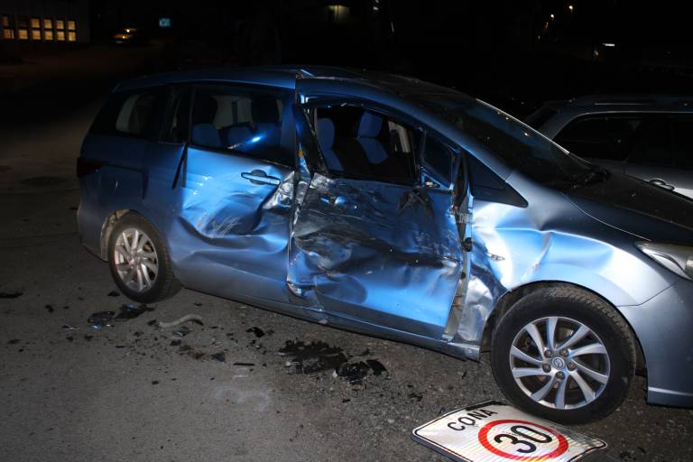 Kmalu zatem so ga izsledili in ugotovili, da je sam povzročil prometno nesrečo: zaradi neprilagojene hitrosti je trčil v prometni znak in dva parkirana avtomobila.