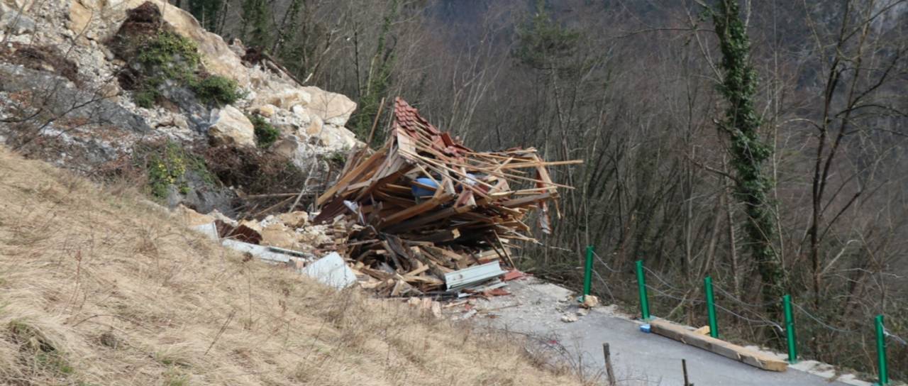 7. januarja se je namreč s kamnite brežine odlomila večja skala in več kubičnih metrov kamnitega materiala. Skalo so takrat razbili delavci, kamniti material pa odložili ob vozišču.