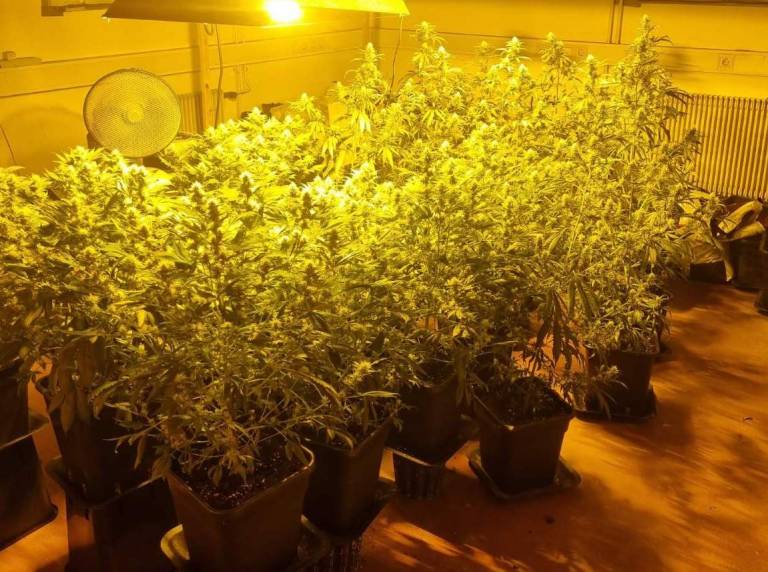 Med preiskavo so odkrili prostor, prirejen za gojenje droge, v katerem je bilo 24 rastlin konoplje, visokih okoli enega metra. Osumljeni je doma hranil tudi okoli 32 kilogramov poskušene rastline konoplje.