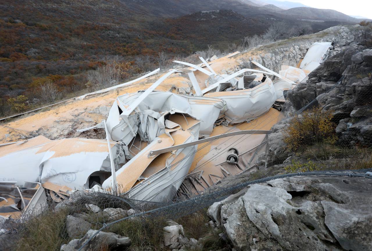 Nekaj pred 9. uro je na tirih med hrvaškima železniškima postajama Meja in Škrljevo v bližini Reke v vzdrževalni vlak trčil tovorni vlak z 19 vagoni, polnimi koruze.