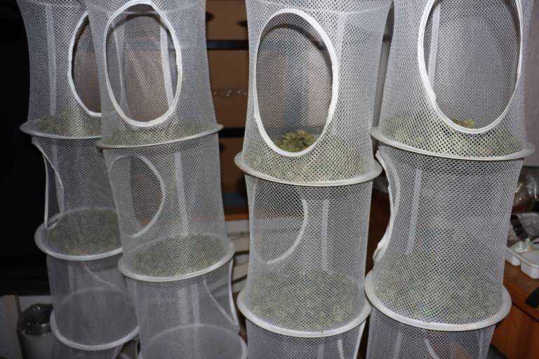 Ljubljanski kriminalisti so včeraj po zbranih obvestilih in pridobljeni odredbi o hišni preiskavi pri 46-letnemu osumljencu našli so zasegli več kot sedem kilogramov že posušene konoplje ter pripomočke za gojenje.