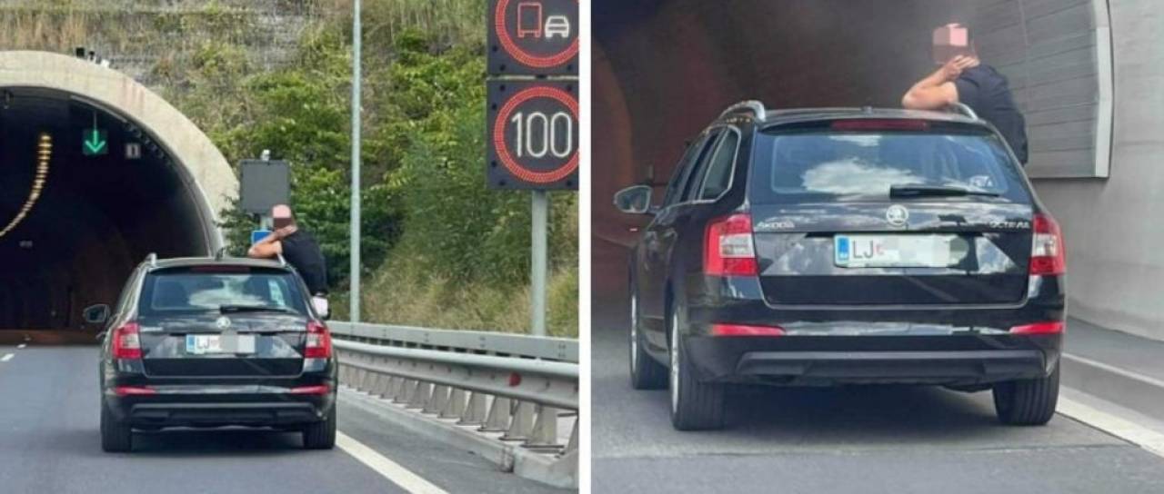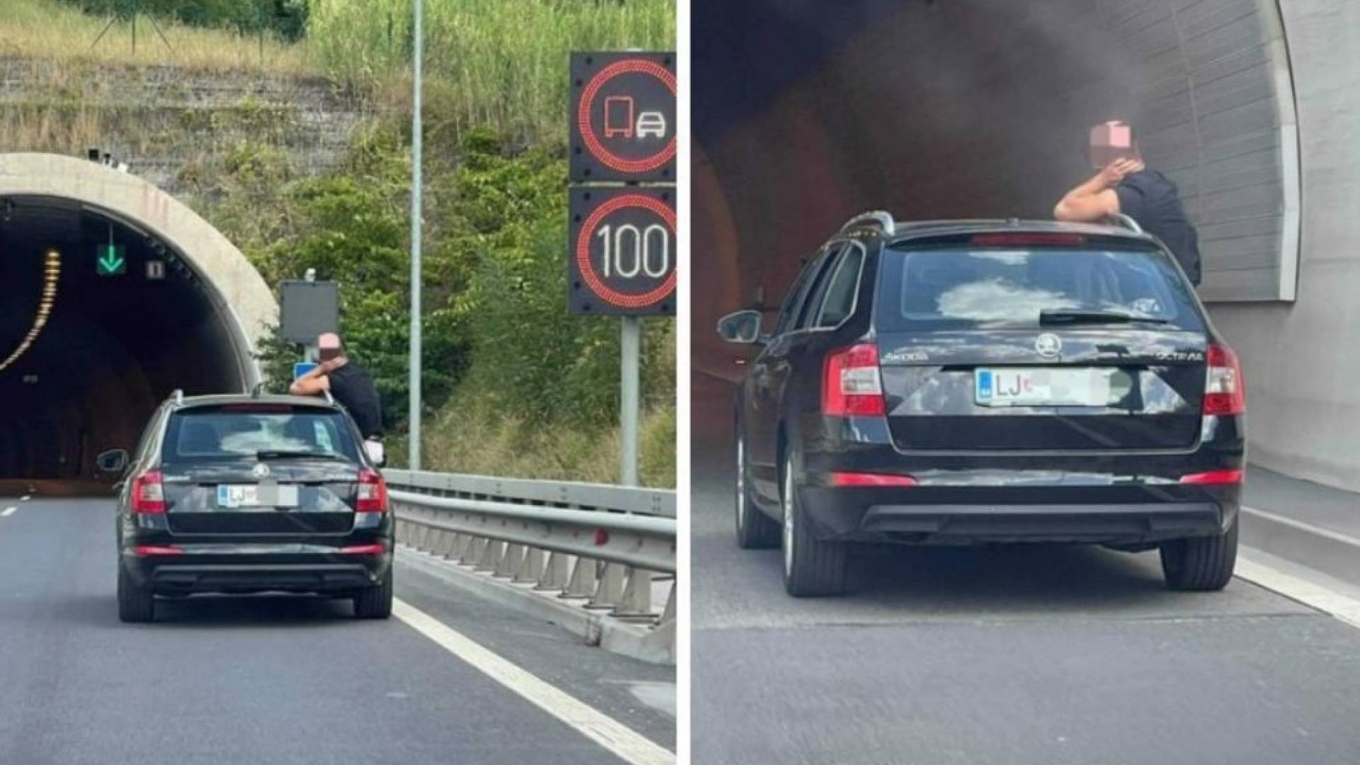 Moški je v predoru, kjer je hitrost omejena na sto kilometrov na uro, pri odprtem oknu sedel na sovoznikovih vratih in se tako skoraj z vsem telesom nagibal ven iz avtomobila.