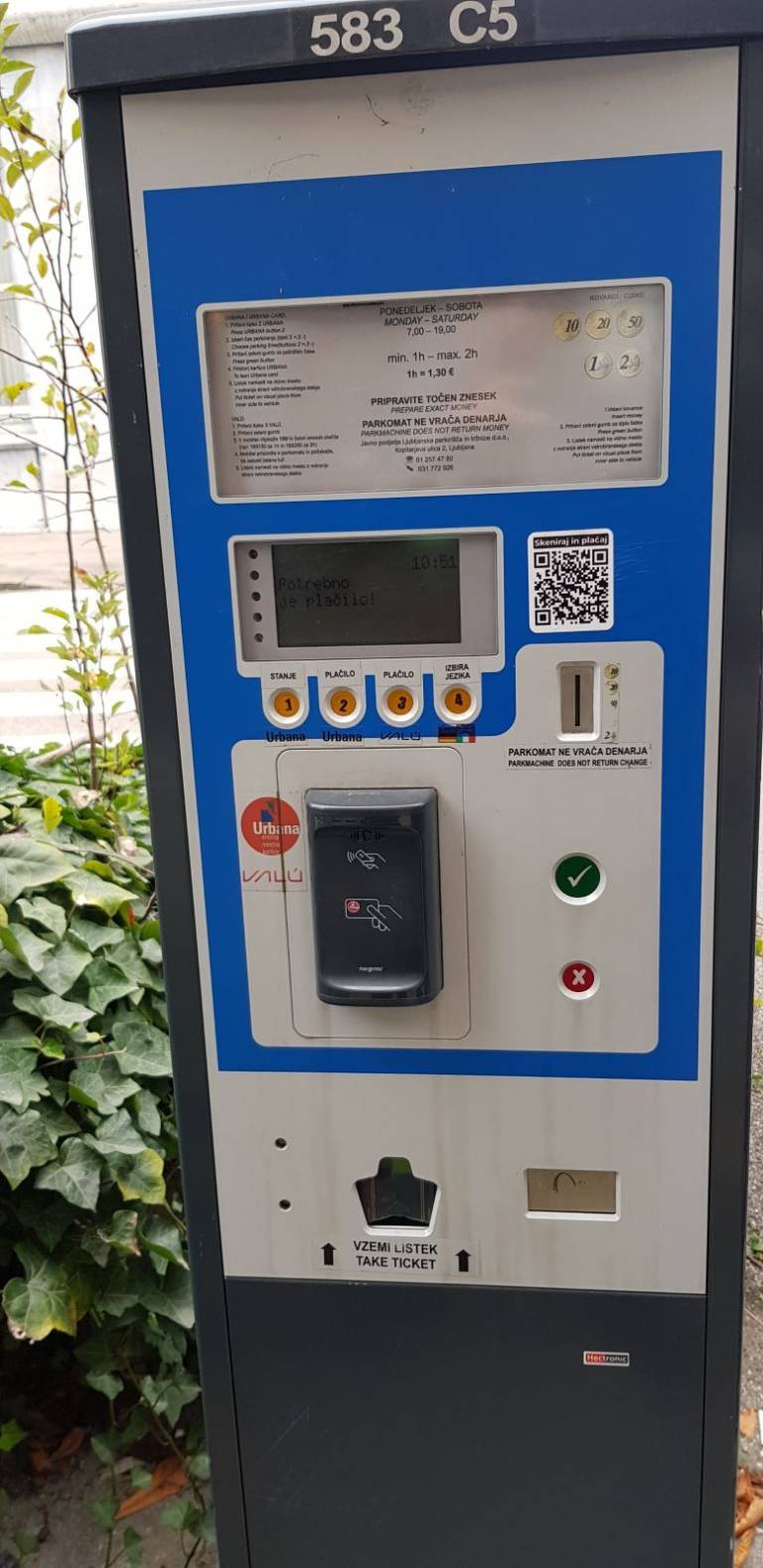 Plačevanje parkirnine s pomočjo QR kod sicer ni mogoče.