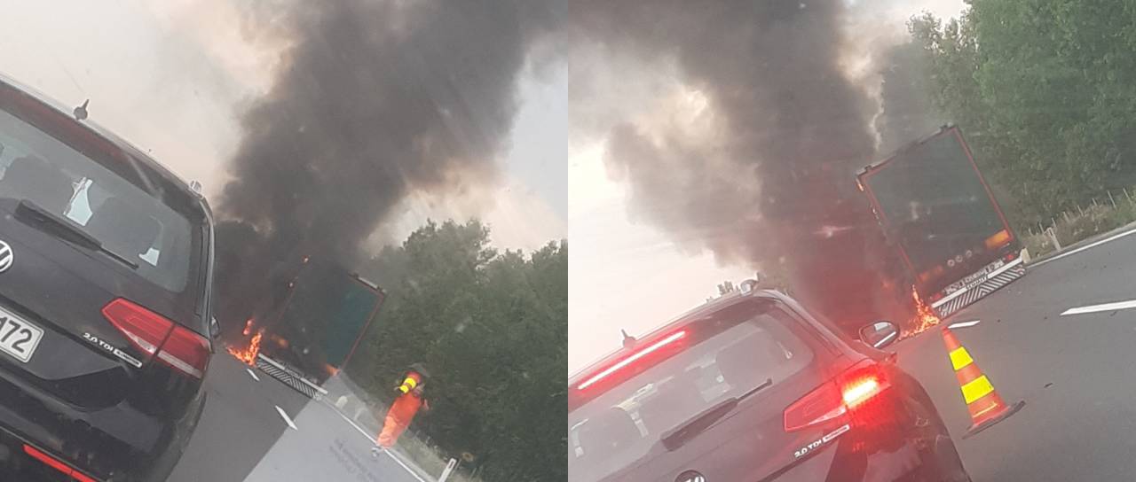 Na avtocesti zagorel del tovornjaka.