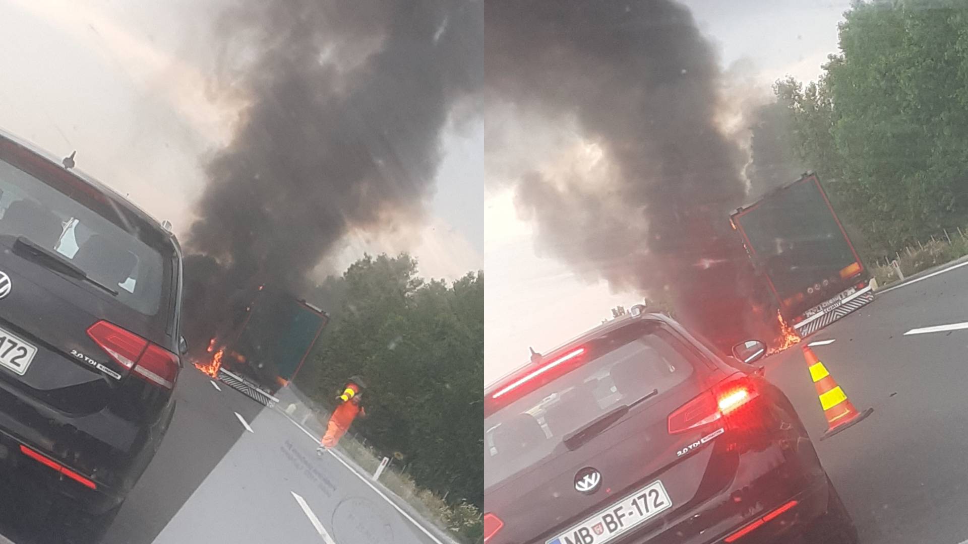Po poročanju Prometno informacijskega centra za državne ceste je pomurska avtocesta zaprta med priključkoma Murska Sobota in Vučja vas proti Mariboru zaradi gorečega vozila.