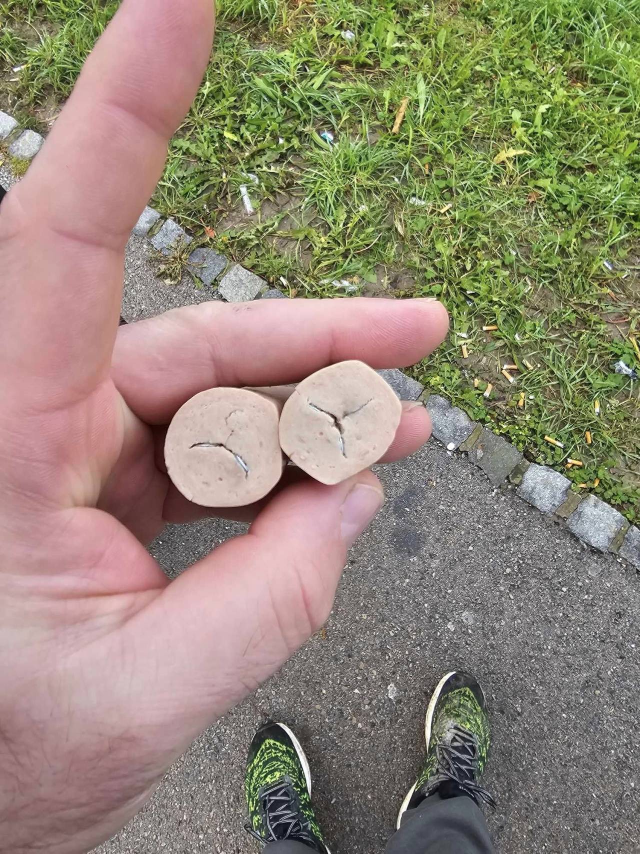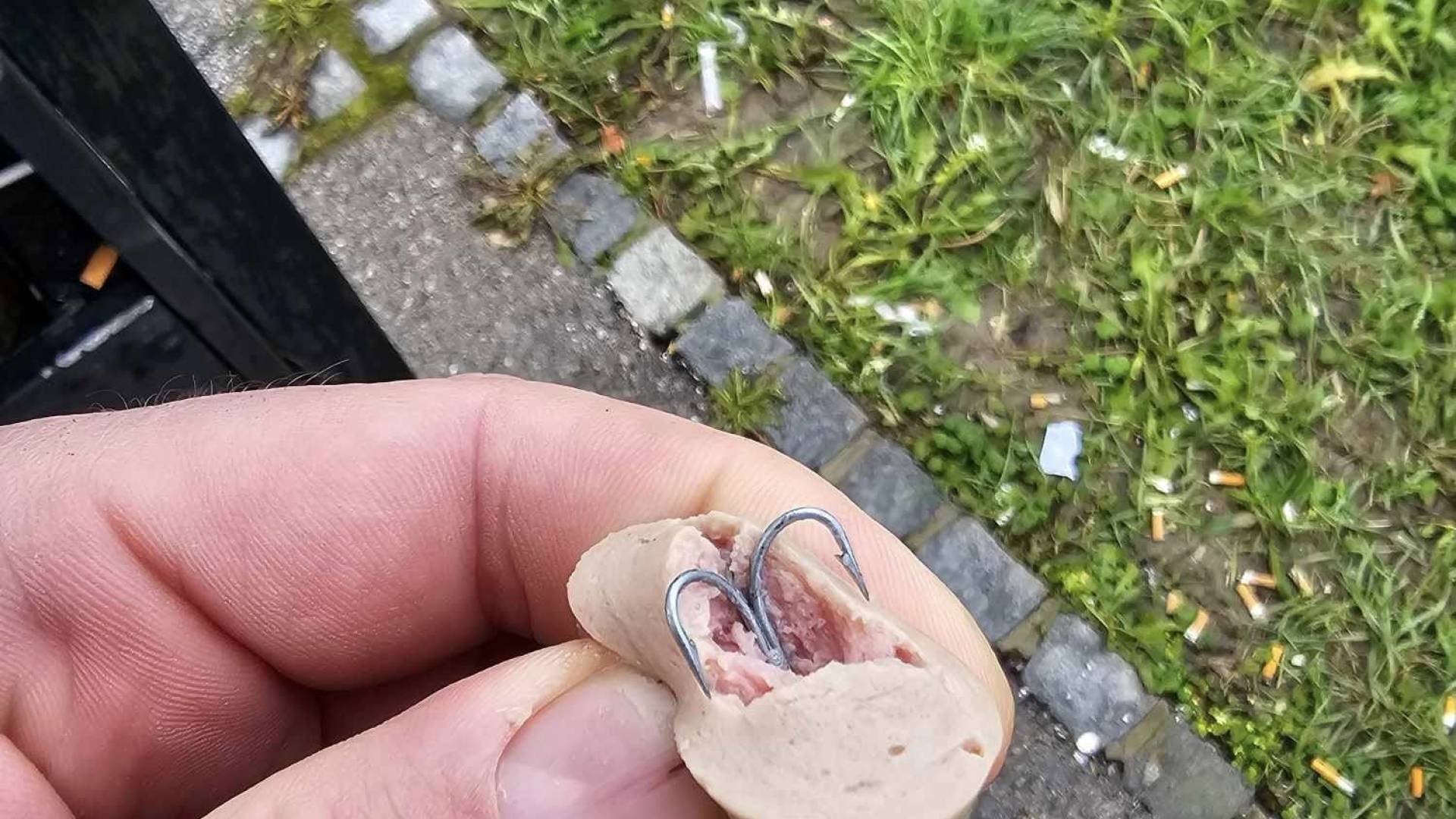 Na Kržišnikovi ulici v Medvodah so bile včeraj najdeni kosi hrenovke, v katerih so bili zarinjeni trnki.